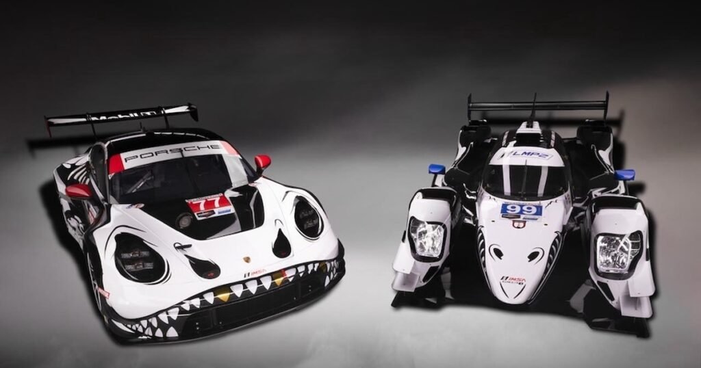 Road Atlanta, GA – AO Racing is gearing up for an exciting Halloween-themed appearance at the Motul Petit Le Mans, showcasing unique black and white skeleton liveries on their No. 77 Porsche 911 GT3 R, known as “Rexy,” and the No. 99 ORECA 07-Gibson LMP2, dubbed “Spike.” The event, set for next week at Michelin Raceway Road Atlanta, will also see the team host a Halloween costume party during their driver autograph session on Friday at 1:00 PM ET, encouraging fans to attend in costume.