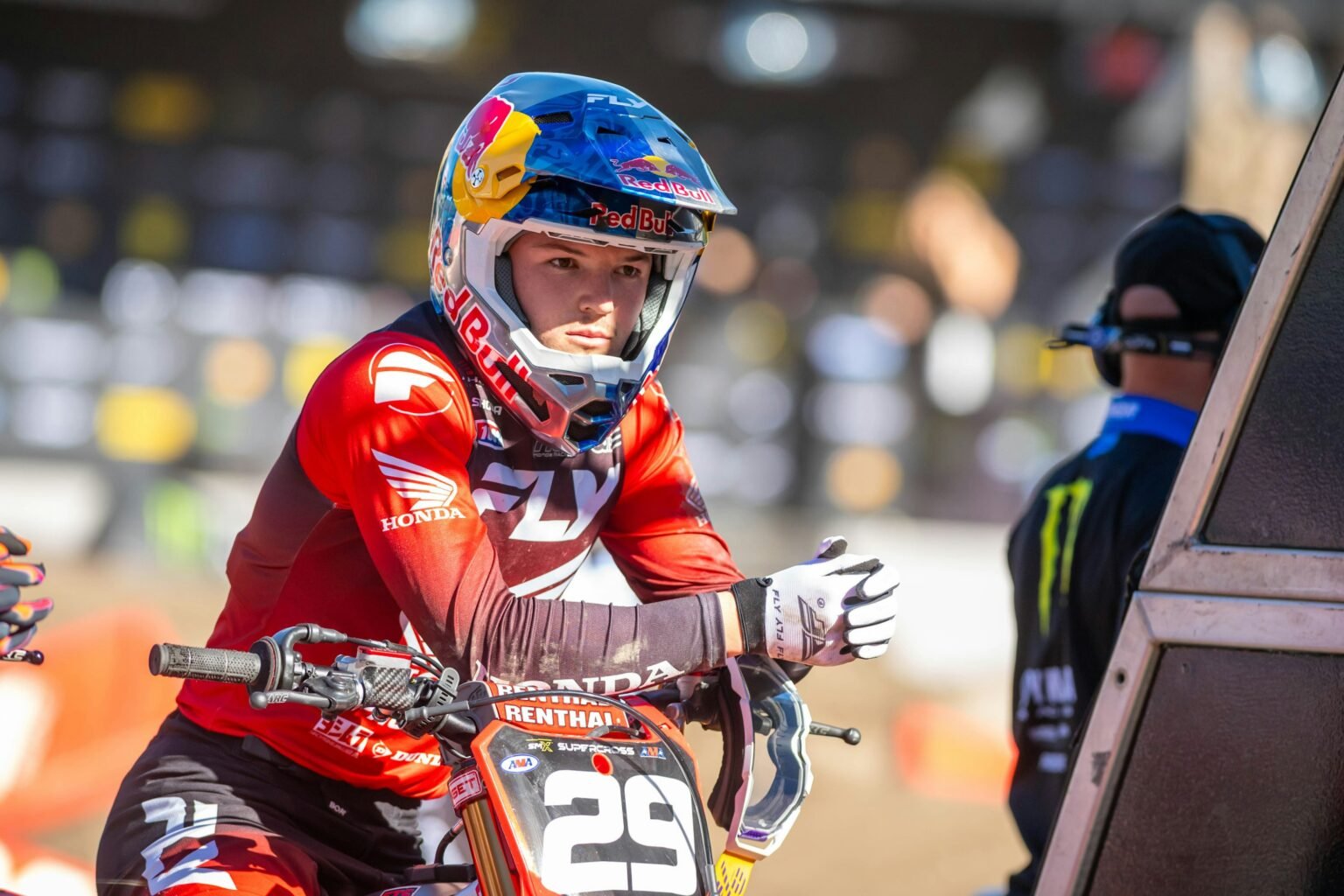 Anaheim, CA – Max Hymas delivered a strong performance at the Anaheim Supercross, finishing second after a series of competitive heats. The rider demonstrated impressive skill, qualifying third in timed sessions and maintaining his positioning through to the main event.