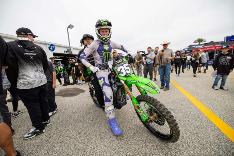 Monster Energy/Pro Circuit Kawasaki’s Drew Adams showcased his potential at the Daytona Supercross but ultimately faced disappointment due to injury. Adams recorded the fastest qualifying time and secured victory in his heat race, demonstrating formidable speed throughout the day.