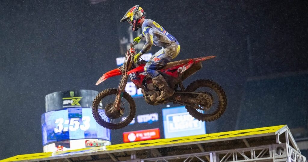In a gripping night at the Philadelphia Supercross, the championship race intensified with Hunter Lawrence and Ken Roczen vying for crucial points. With only two races remaining in the season, both riders put their championship hopes on the line, navigating a challenging muddy track that tested their skill and endurance.