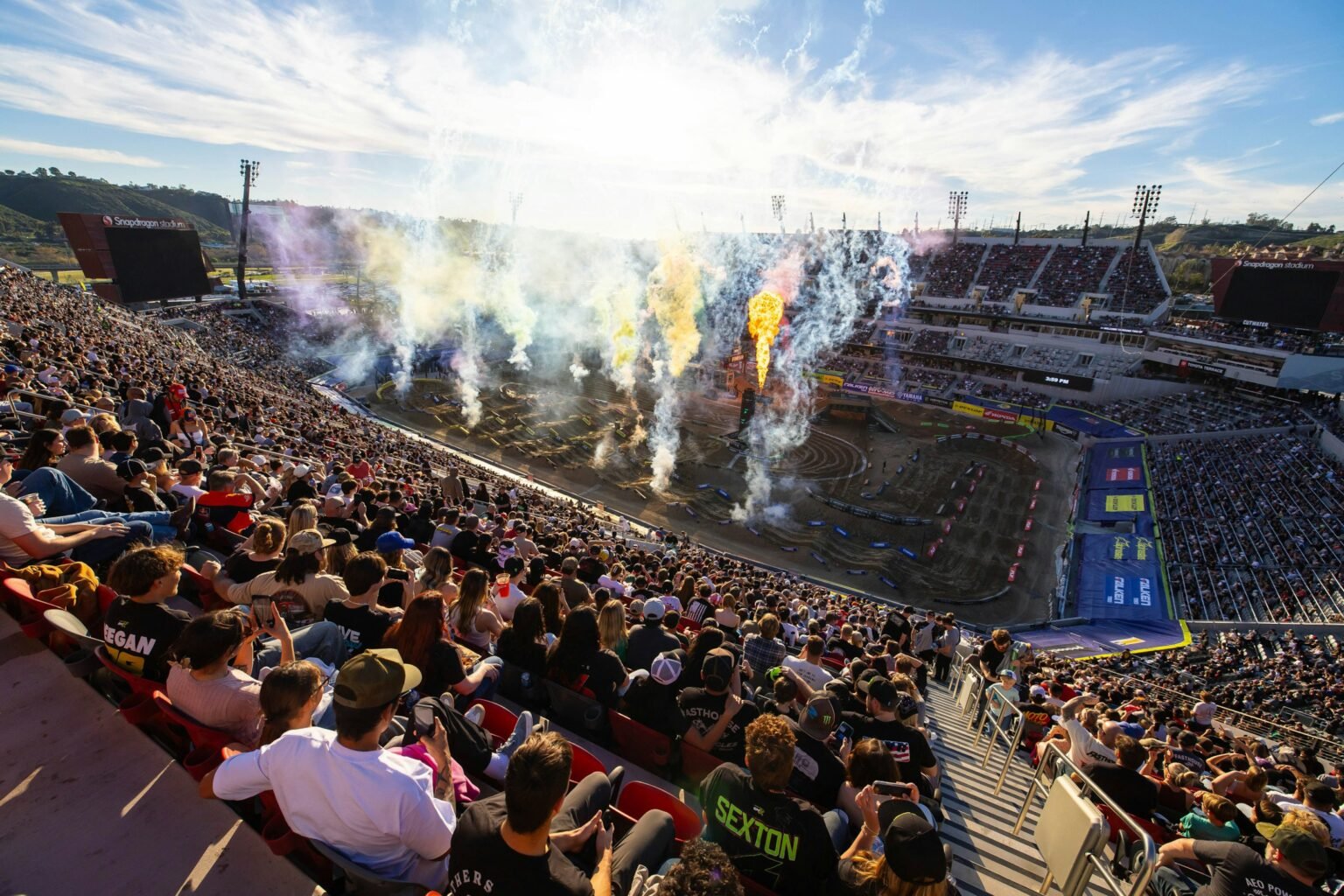 In a fiercely contested 450SMX class race, Eli Tomac emerged victorious, narrowly holding off Hunter Lawrence and Ken Roczen in a thrilling showdown. Tomac’s win comes amidst intense pressure from both competitors, particularly in the closing laps.