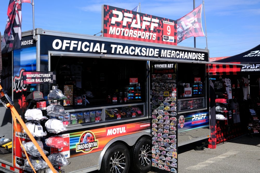 The vendor features an extensive selection of IMSA scale models, including the newly released 2026 Pfaff Motorsport Lamborghini lineup and exclusive artwork by Roger Warrick. Among the highlights is AO Racing’s limited-edition Mini GT 1:64 scale ‘Roxy’ Porsche 911 GT3 R, offered at competitive prices for fans shopping on-site.